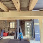 Isolation en laine de mouton (très bon isolant phonique) et pose de placo entre poutres. C'est du boulot et le rendu une fois peint sera magnifique.