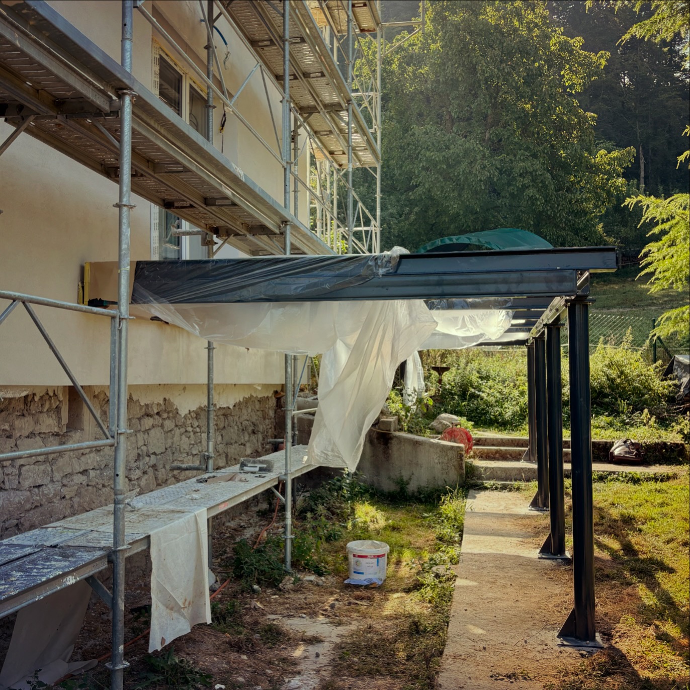- Isolation des faces de la maison en fibre de bois à crépir.