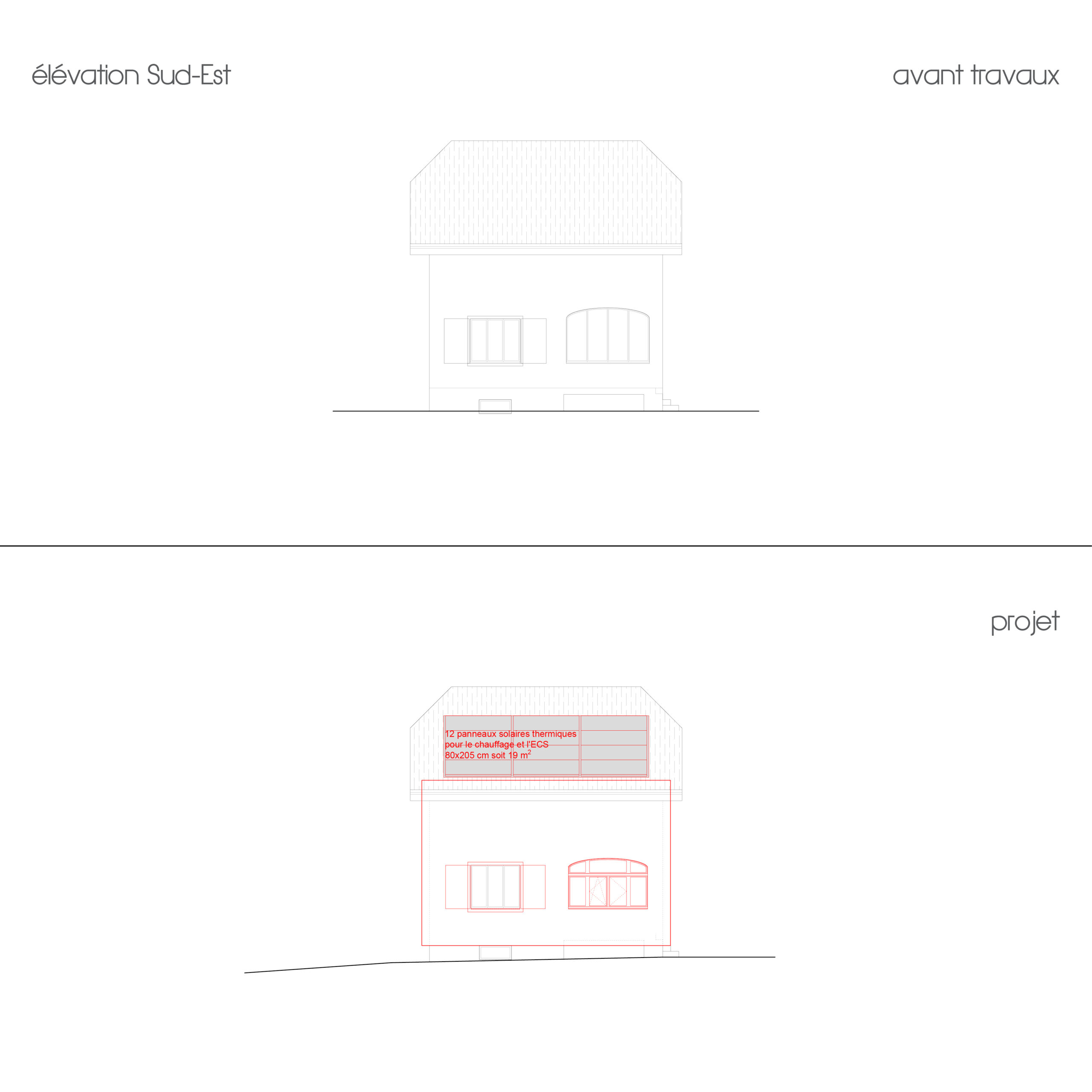 - Changement du système de chauffage par la pose de panneaux solaires thermiques et par la pose d’une chaudière à pellets en lieu et place de la chaudière à mazout existante.