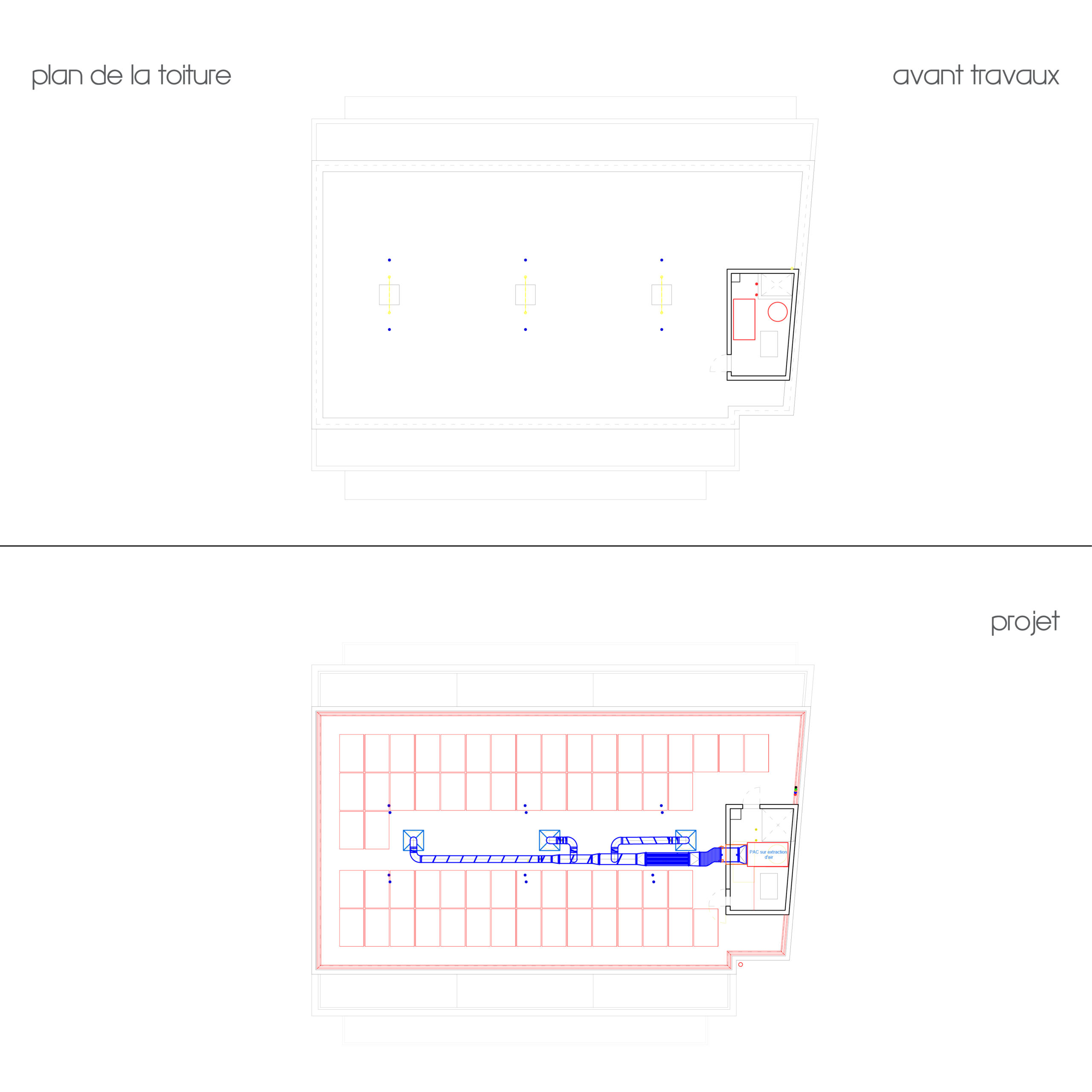 - Pose de panneaux solaires photovoltaïques sur le toit plat (70 m2 environ) pour fournir l’énergie de la PAC.